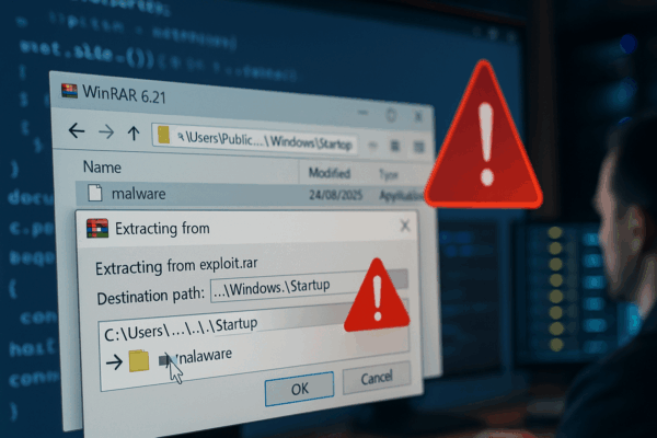 CVE-2025-8088 to klasyczny przykład, jak popularne, „niewinne” narzędzie (archiwizer) może stać się furtką dla atakujących, jeśli biblioteka błędnie przetwarza ścieżki plików. Najważniejsze kroki obronne to natychmiastowa aktualizacja do WinRAR 7.13, wprowadzenie zasad sandboxowania / skanowania załączników oraz monitorowanie środowiska pod kątem wskaźników kompromitacji (nowe pliki w autostart, anomalie sieciowe). Raporty ESET i innych dostawców potwierdzają aktywne wykorzystanie tej luki w grupowanych kampaniach, co sprawia, że reagowanie jest pilne. welivesecurity.comwin-rar.com